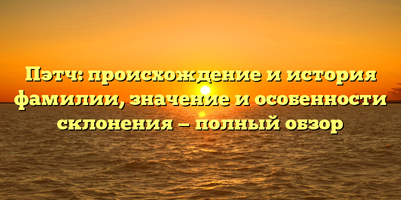 В данной статье мы подробно рассмотрим происхождение и историю фамилии Пэтч, а также ее значение и особенности склонения в различных языках.