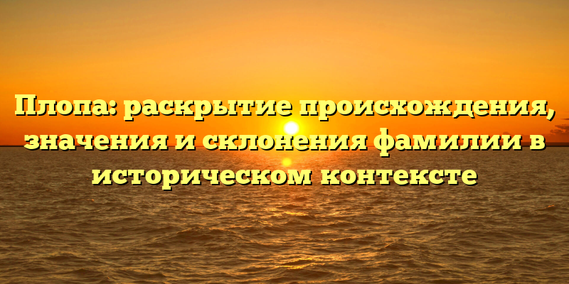 В данной статье мы рассмотрим происхождение, значения и склонение фамилии Плопа в историческом контексте, чтобы лучше понимать ее происхождение и значение.