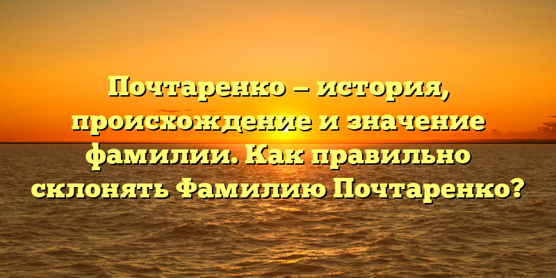 - Почтаренко: происхождение, история и правильные способы склонения этой фамилии