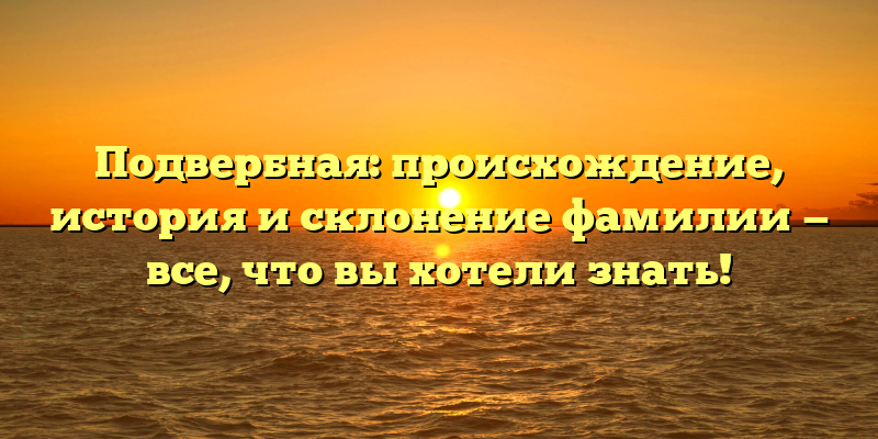 Подвербная — это одна из самых интересных фамилий среди множества русских фамилий. Рассмотрим ее историю, происхождение и склонение. Здесь вы найдете информацию о том, как эта фамилия появилась и какие события способствовали ее развитию на протяжении веков.