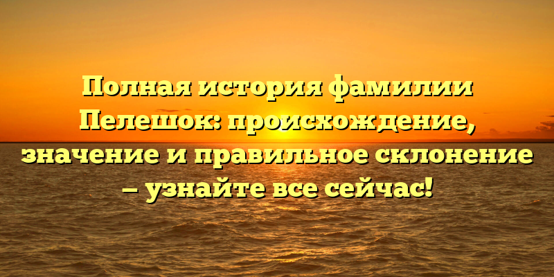 - Фамилия Пелешок: полная история происхождения, значения и правильного склонения — узнайте ее таинственную историю!
