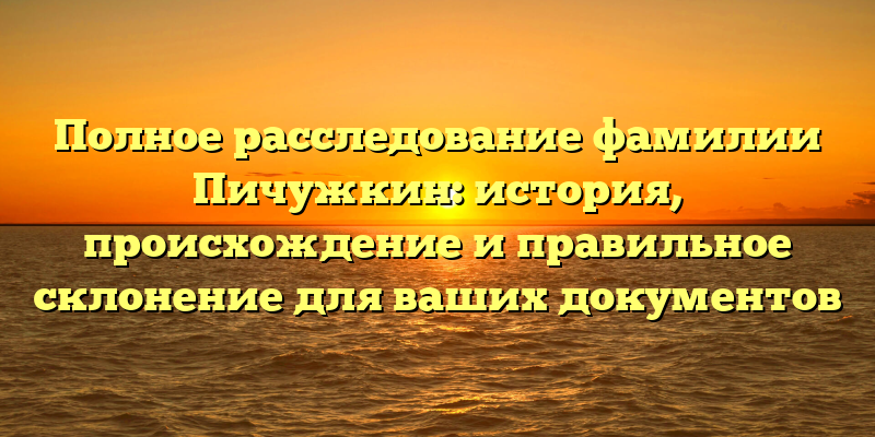 В этой статье мы рассмотрим историю фамилии Пичужкин и ее происхождение, а также дадим рекомендации по правильному написанию и склонению для использования ваших официальных документов.