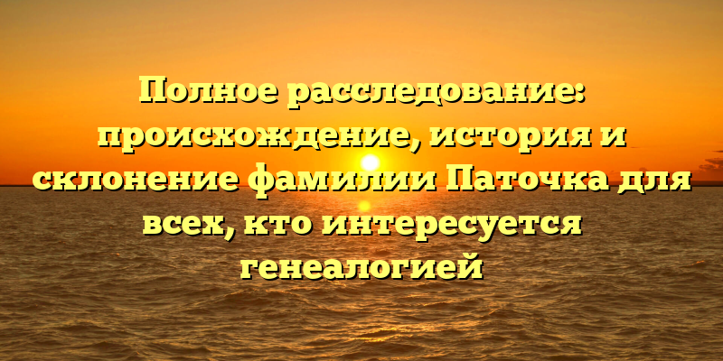 Исследование фамилии Паточка: происхождение, история и полная информация для генеалогов