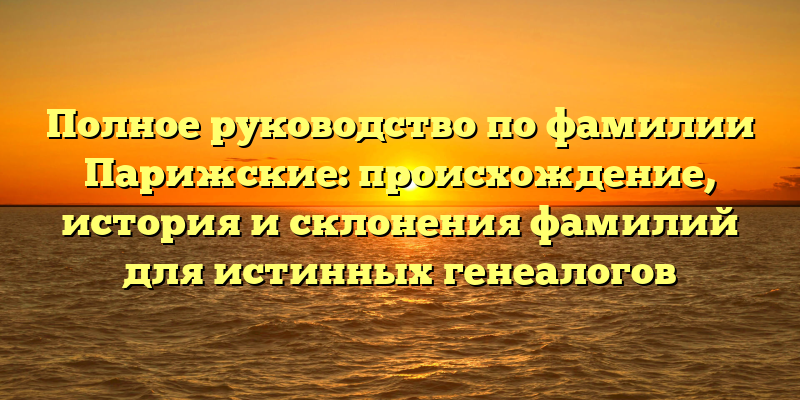 - Откуда происходят Парижские: полное руководство истории и склонений фамилий для поиска значимых генеалогических связей