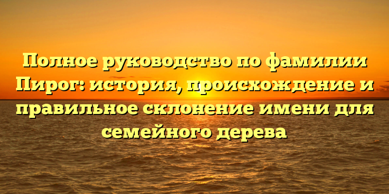 В этой статье мы расскажем о том, как возникла фамилия Пирог, где она имеет свое происхождение, а также о правильном склонении имени для своего семейного дерева. Если вы являетесь частью семьи Пирог, то данный материал поможет вам более глубоко понять свое происхождение и родословную.