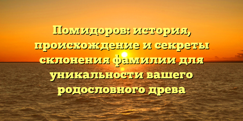 Фамилия Помидоров является одной из самых необычных и интересных в русском языке. Ее происхождение находится в глубинах веков и всегда привлекало внимание исследователей и любителей генеалогии. В данной статье мы расскажем о том, как возникла фамилия Помидоров, ее исторический контекст и особенности склонения, чтобы вы могли сделать свое родословное древо более уникальным и интересным.