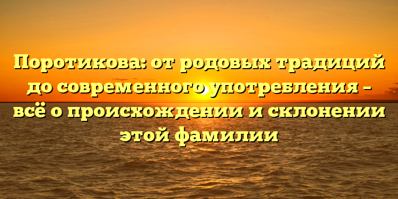 - Полный гид по фамилии Поротикова: история, происхождение и способы склонения для современного использования