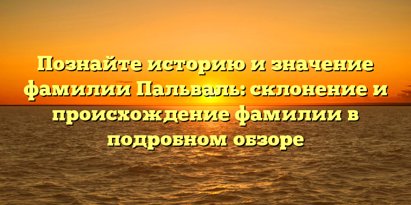 - Проследите историю и тайны происхождения фамилии Пальваль: полный обзор и значимость фамилии.