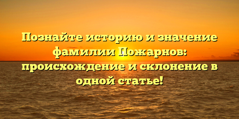 - Раскрываем тайны фамилии Пожарнов: происхождение, склонение и история рода в одной статье!