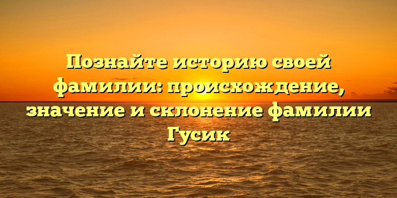 - Гусик — происхождение, значение и склонение фамилии: узнайте историю своих корней