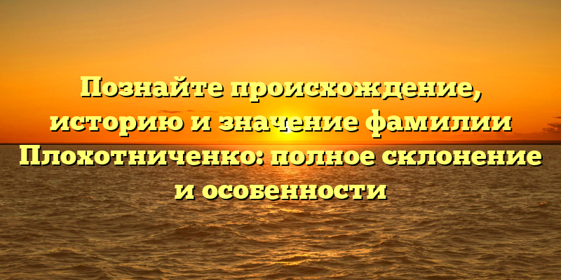 Плохотниченко — это фамилия, которая на первый взгляд кажется сложной и необычной. Она имеет славянские корни и происходит от слова «плохотник», что означает «человек, занимающийся плохо оплачиваемой работой».
