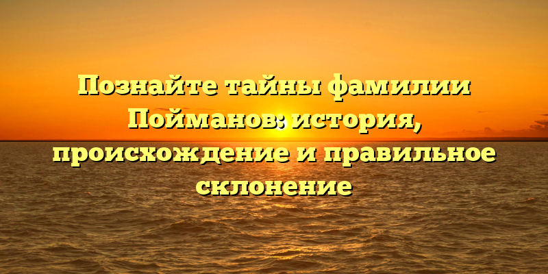Поймайте все нюансы: история, происхождение и правильное склонение фамилии Пойманов — узнайте больше!
