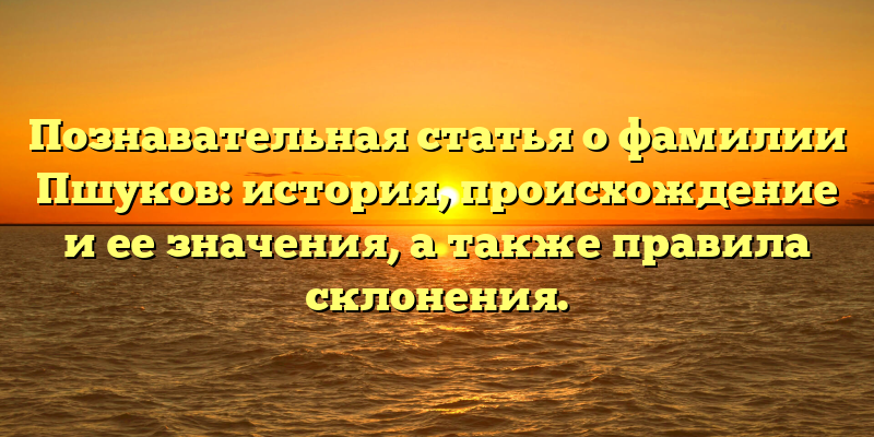 Откройте тайны фамилии Пшуков: история, происхождение и правила склонения в познавательной статье.