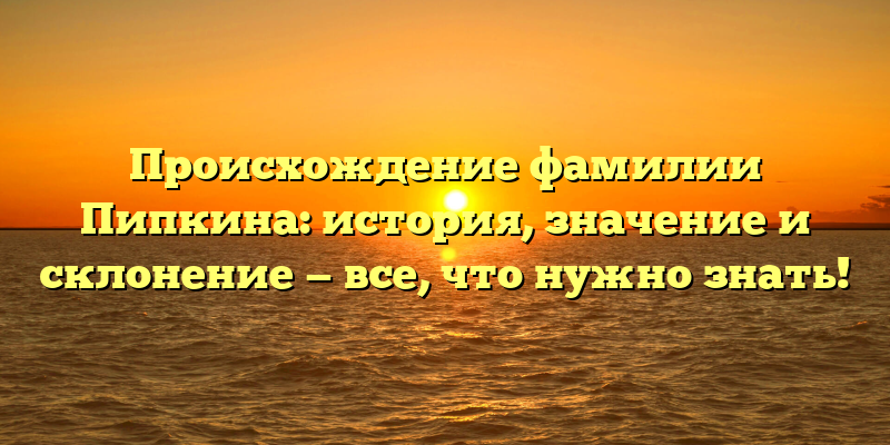 Фамилия — это важный атрибут нашей личности, который передается из поколения в поколение. Она содержит в себе богатую историю, связанную с происхождением и значением. В данной статье мы рассмотрим все, что нужно знать о фамилии Пипкина — от истории ее появления до особенностей склонения.