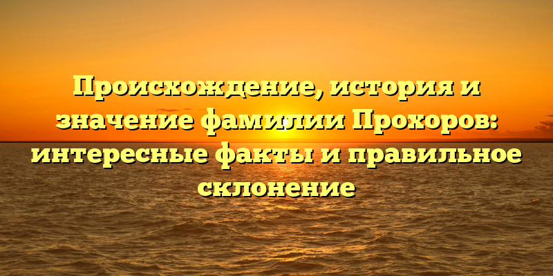 В данной статье мы рассмотрим происхождение фамилии Прохоров, ее историю и значение, а также правильное склонение для разных родов и падежей. Вы узнаете, какие интересные факты связаны с этой фамилией, кто известен под этой фамилией в России и за ее пределами, а также какие традиции и обычаи связаны с ней.