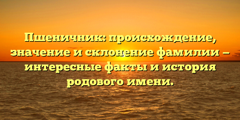 - История фамилии Пшеничник: от происхождения до значения — увлекательные факты о родовом имени
