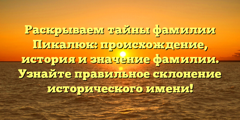 Фамилия Пикалюк: история, происхождение и склонение имен – все, что нужно знать!