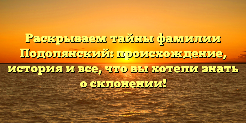 История и происхождение фамилии Подолянский: полное руководство по склонению и тайны ее происхождения!