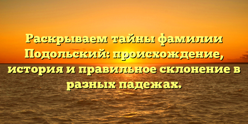- История и происхождение фамилии Подольский: все, что вам нужно знать, чтобы правильно склонять в разных падежах