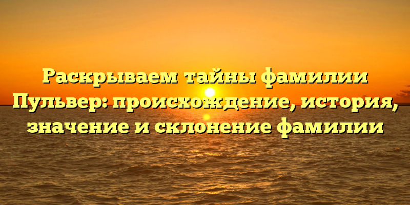 - Фамилия Пульвер: история происхождения, значение и склонение, которые вы должны знать!
