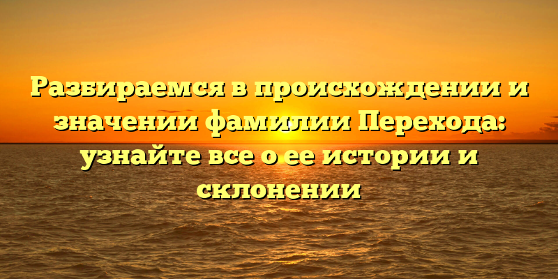 - История и склонение фамилии Перехода: откуда происходит и что означает название