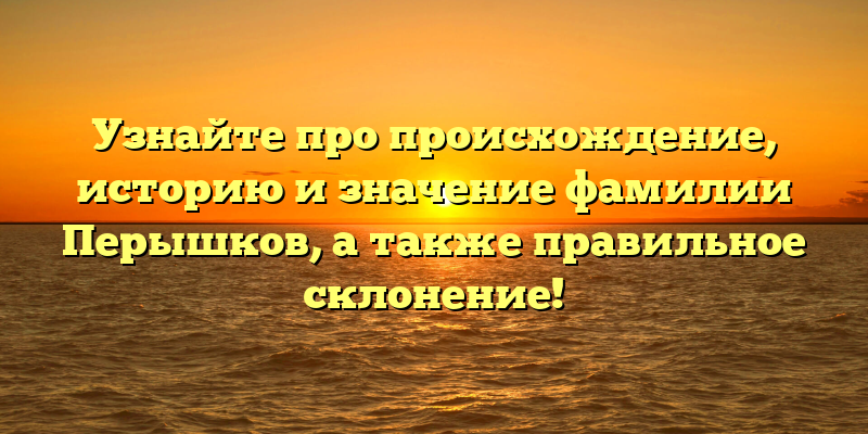 Фамилия Перышков, как и любая другая фамилия, имеет свое происхождение и историю. Если вы хотите узнать больше о своей фамилии или просто интересуетесь этой темой, то вы попали по адресу. В данной статье мы расскажем о происхождении фамилии Перышков, о людях, которые ее носят, и о том, как правильно склонять данный глагол при образовании форм единственного и множественного числа.