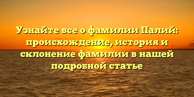 - История фамилии Палий: происхождение, родовые линии и правила склонения в нашей увлекательной статье.