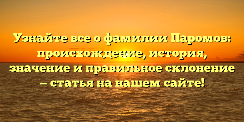 - Фамилия Паромов: происхождение, история и значение — полный гид на нашем сайте, включая правильное склонение!