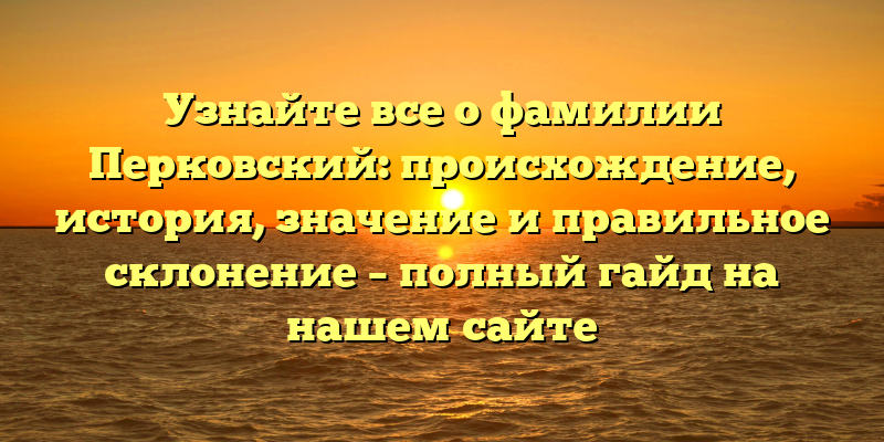 Фамилия Перковский: история, происхождение, значение и правила склонения — узнайте все на нашем сайте!