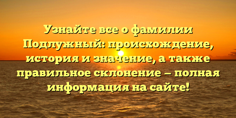Раскрываем тайны фамилии Подлужный: происхождение, история и правильное склонение в одной статье!
