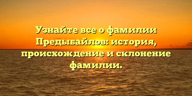 Каждая фамилия — это уникальный след в истории рода человеческого. Она отражает нашу прошлую жизнь, предки и традиции. Фамилия Предыбайлов — не исключение и непременно привлекает внимание.