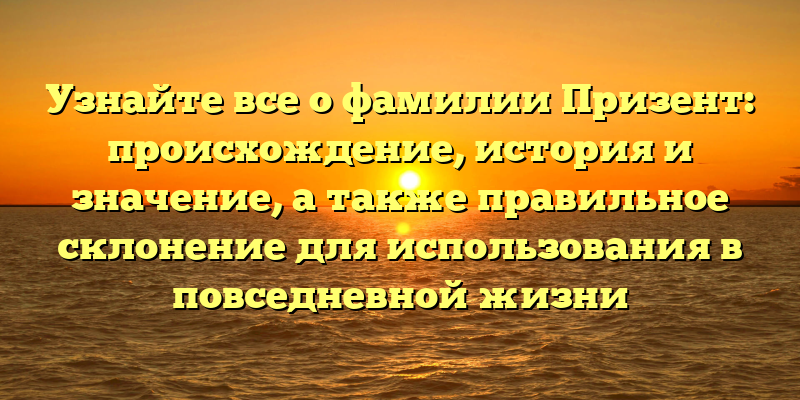 - Раскрываем тайны фамилии Призент: происхождение, история и правильное склонение для использования в повседневной жизни