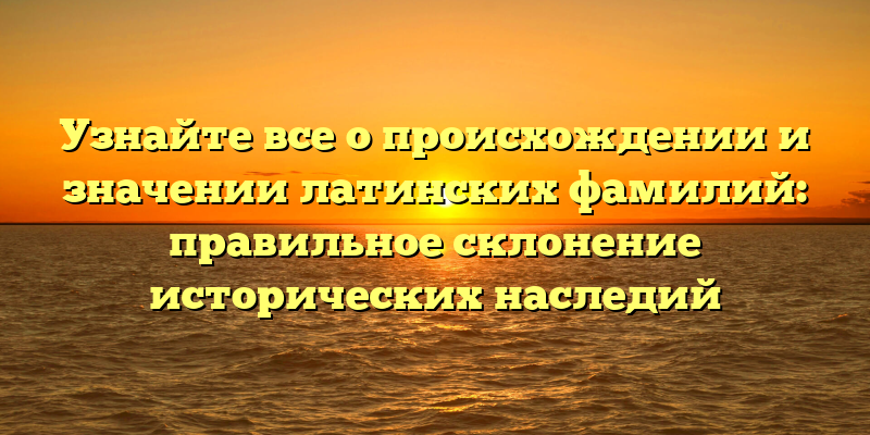 В этой статье мы рассмотрим происхождение и значение латинских фамилий, а также правильное склонение исторических наследий. Вы узнаете, как формировались фамилии в Римской империи, как они изменились на протяжении веков и почему они до сих пор остаются социальным индикатором.