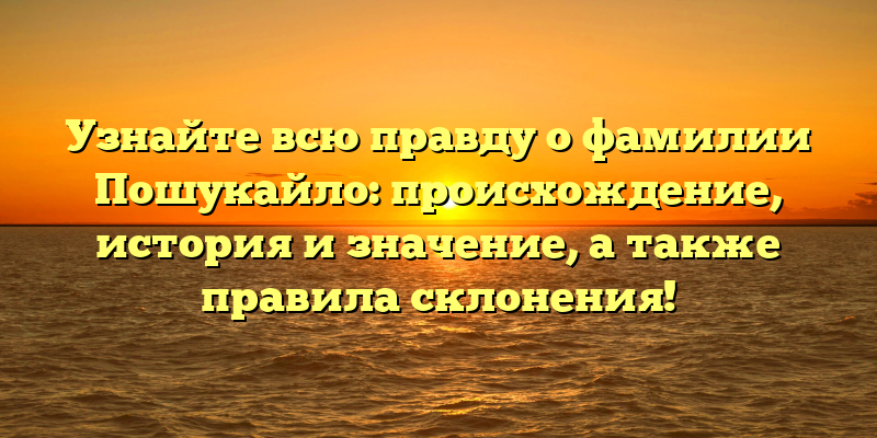 Раскрытие тайн фамилии Пошукайло: происхождение, история, значение и правила склонения!