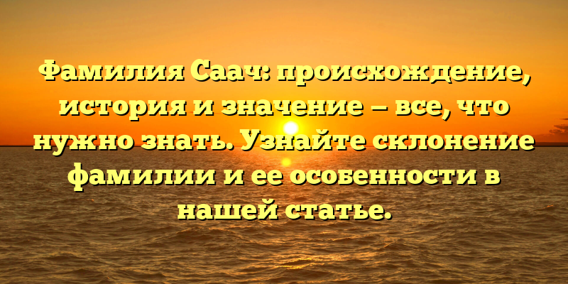 - Погрузитесь в историю и происхождение фамилии Саач с нашей статьей. Узнайте все о ее склонении и особенностях.