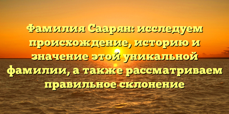 - История и происхождение фамилии Саарян: ознакомление с уникальной генеалогией и правильным склонением