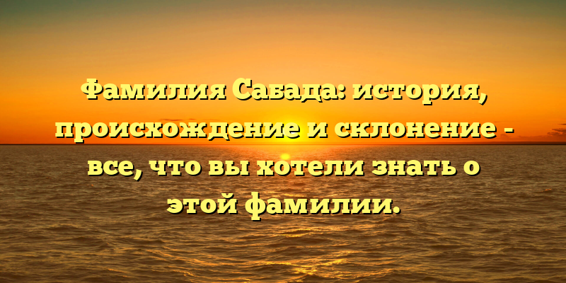 - Познакомьтесь с фамилией Сабада: происхождение, генеалогия и написание — полный гид для исследования этой уникальной фамилии