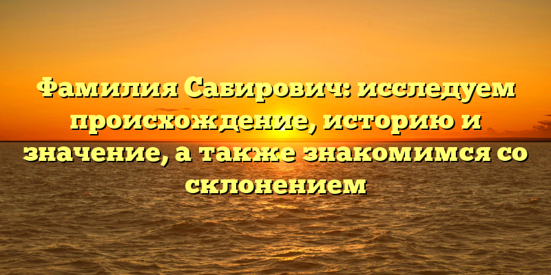 Фамилия Сабирович: происхождение, история и значение, склонение — полный гид для изучения генеалогии и культурного наследия