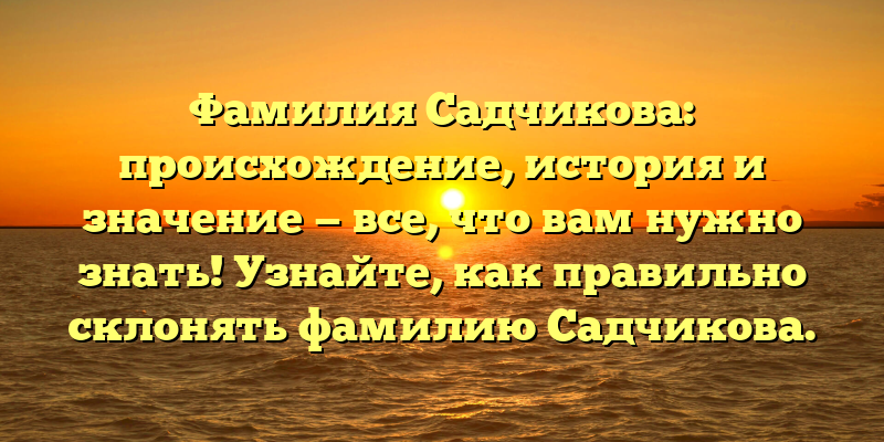 Исследование происхождения и значения фамилии Садчикова: правила склонения исторической фамилии