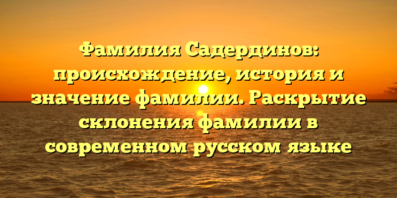 - Исследование фамилии Садердинов: происхождение и интересные факты, а также правильное склонение в современном русском языке