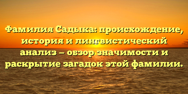 - Фамилия Садыка: происхождение, история и анализ — раскрываем тайны и значимость этого рода.
