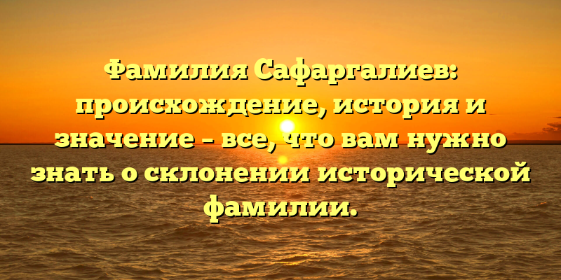 Если Вы хотите узнать больше о фамилии Сафаргалиев, то этот материал будет полезен для Вас. Мы подготовили все, что Вам нужно знать об этой фамилии, включая историю ее происхождения, значение и склонение. Наслаждайтесь чтением!