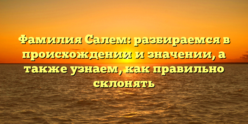 - Фамилия Салем: происхождение, значение и правильное склонение в одной статье — полезная информация для каждого!
