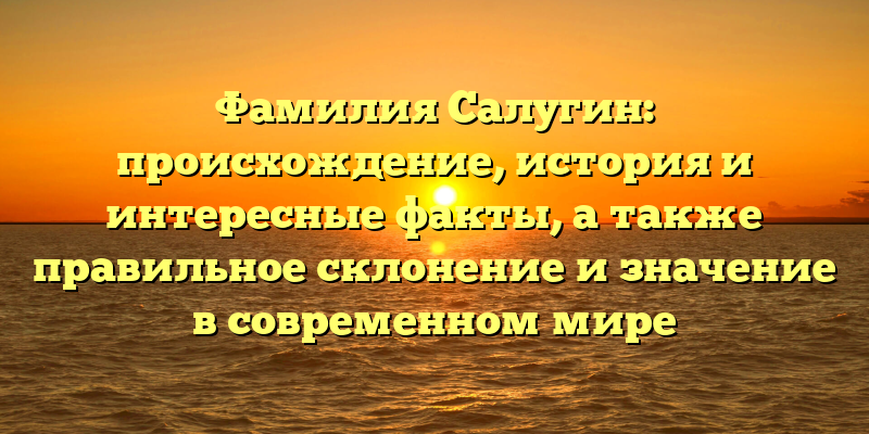 - Фамилия Салугин: происхождение, история и интересные факты, а также правильное склонение и значение в современном мире — узнайте все о своих предках и значении этой фамилии сегодня