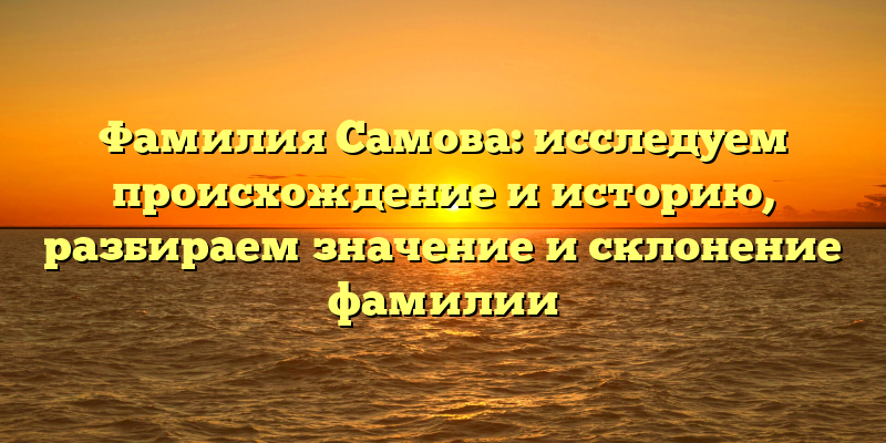 Фамилия Самова — одна из тех фамилий, которая не только прекрасно звучит, но и несет в себе некоторые загадки и интересные исторические факты. В данной статье мы рассмотрим происхождение и историю фамилии Самова, а также разберем значения и склонения, связанные с ней.