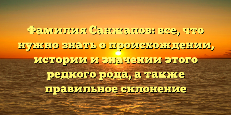 Если вы являетесь представителем рода Санжаповых, или просто интересуетесь их историей и происхождением, то эта статья будет для вас полезной и интересной.