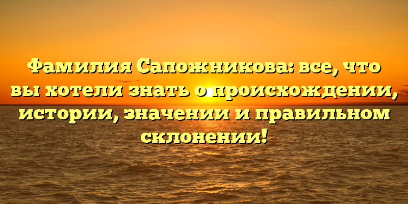Фамилия Сапожникова: полная история, значение и правильное склонение в одной статье!