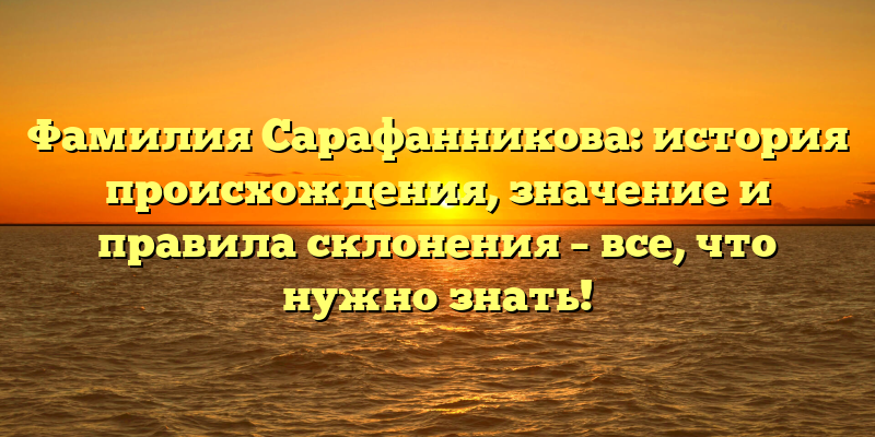 - Фамилия Сарафанникова: происхождение, значение и правила склонения – полный гид для интересующихся