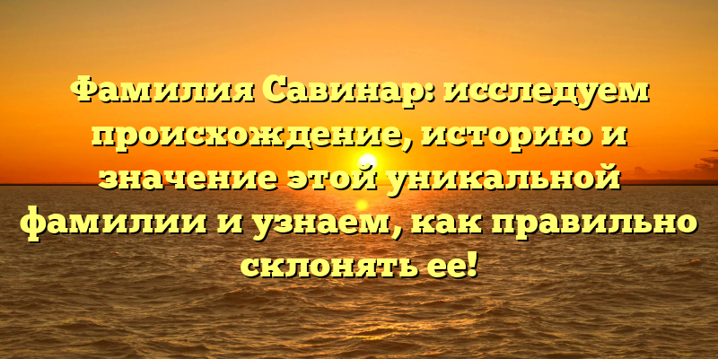 - Фамилия Савинар: происхождение, история и значение. Научись правильно склонять!