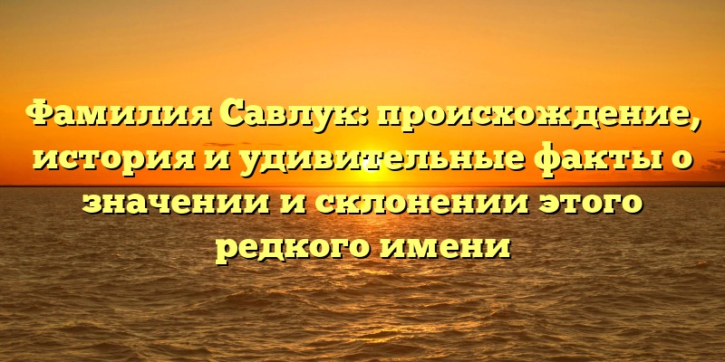 Савлук — это редкая и интересная фамилия, о которой мало что известно. В этой статье мы расскажем о происхождении и истории этого имени, а также об удивительных фактах, связанных с его значением и склонением.